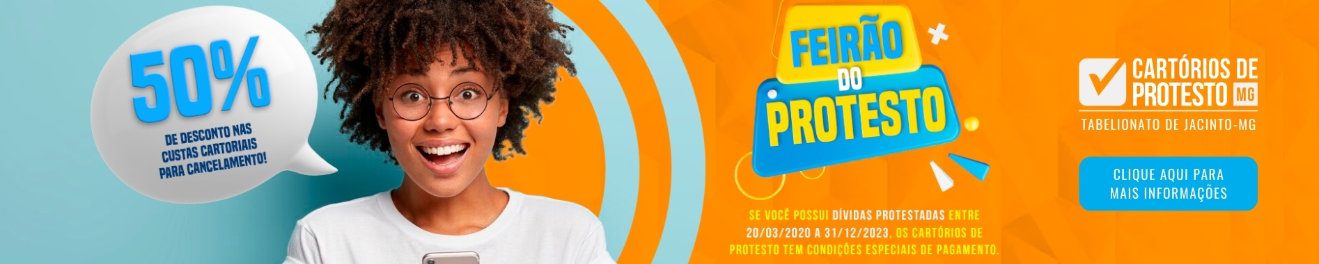 Feirão do Protesto em Jacinto-MG, até 50% de desconto nas custas cartorárias, saiba mais aqui
